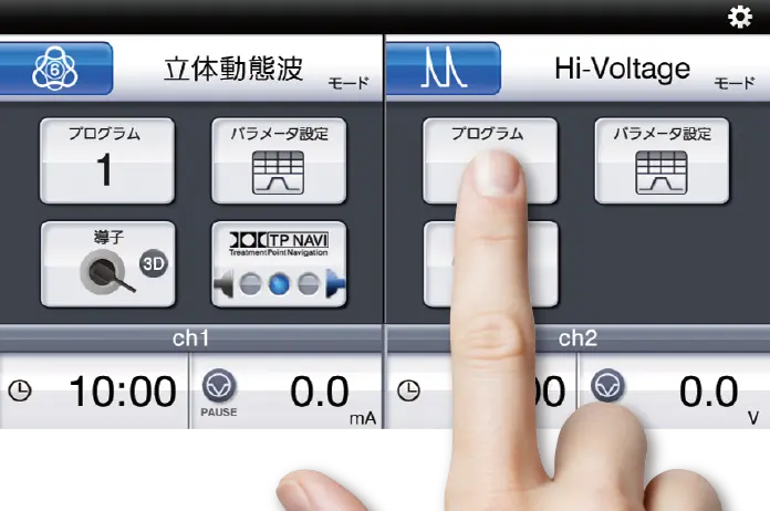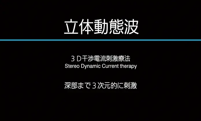 立体的に複雑な電流のうねりを発生させ、広範囲に深部を刺激する「立体動態波モード」、マイクロカレント治療が立体的に行える「3D MENSモード」に加えて、筋肉に立体的な刺激を与える「3D EMSモード」を新たに搭載。