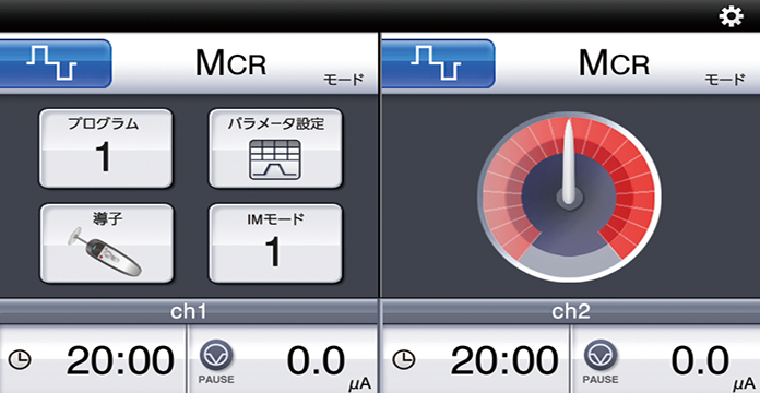 「Hi-Voltageモード」、「EMSモード」、「MCRモード」を合わせた6種類の電気刺激モードにより、患者様一人ひとりの症状に合わせた多彩な治療を可能にします。
