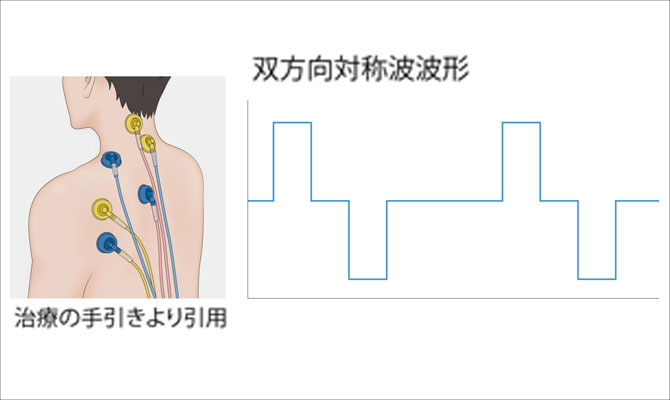 双方向対称波と名づけられた波形を使用します。刺激感が強いこのような波形は、いわゆる“ツボ”や“トリガーポイント”の刺激によく用いられます。