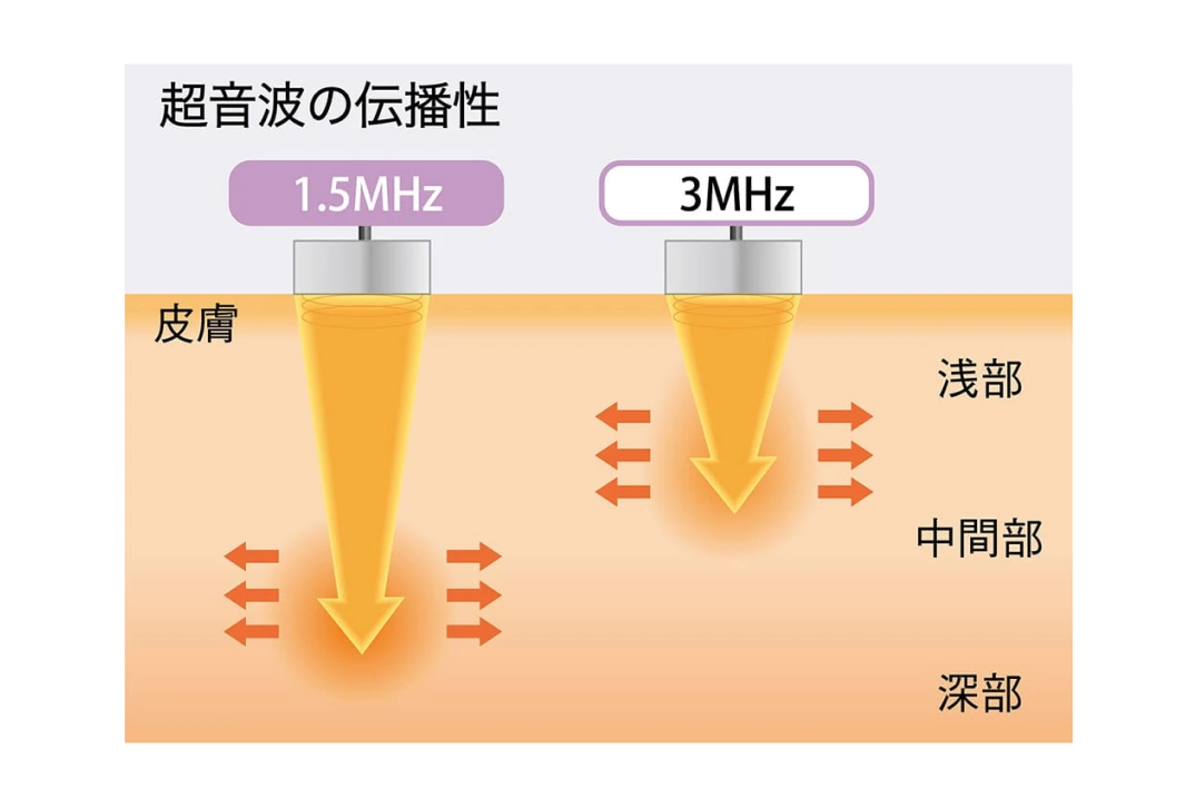 超音波が生体組織に照射される際に生じる熱で、温熱作用を発生させ、超音波が到達している範囲を立体的に温めることができます。