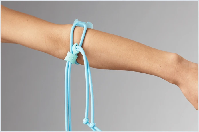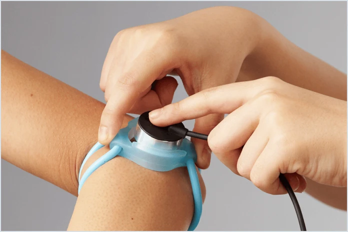 自由に伸びるシリコン製の固定具を独自開発。従来固定しづらかった治療部位への固定が容易になりました。装着の手間がかからず、無臭でラテックス(天然ゴム)アレルギーの心配もありません。また、高圧蒸気滅菌器による高温滅菌が可能なので、いつでも清潔にお使いいただけます。