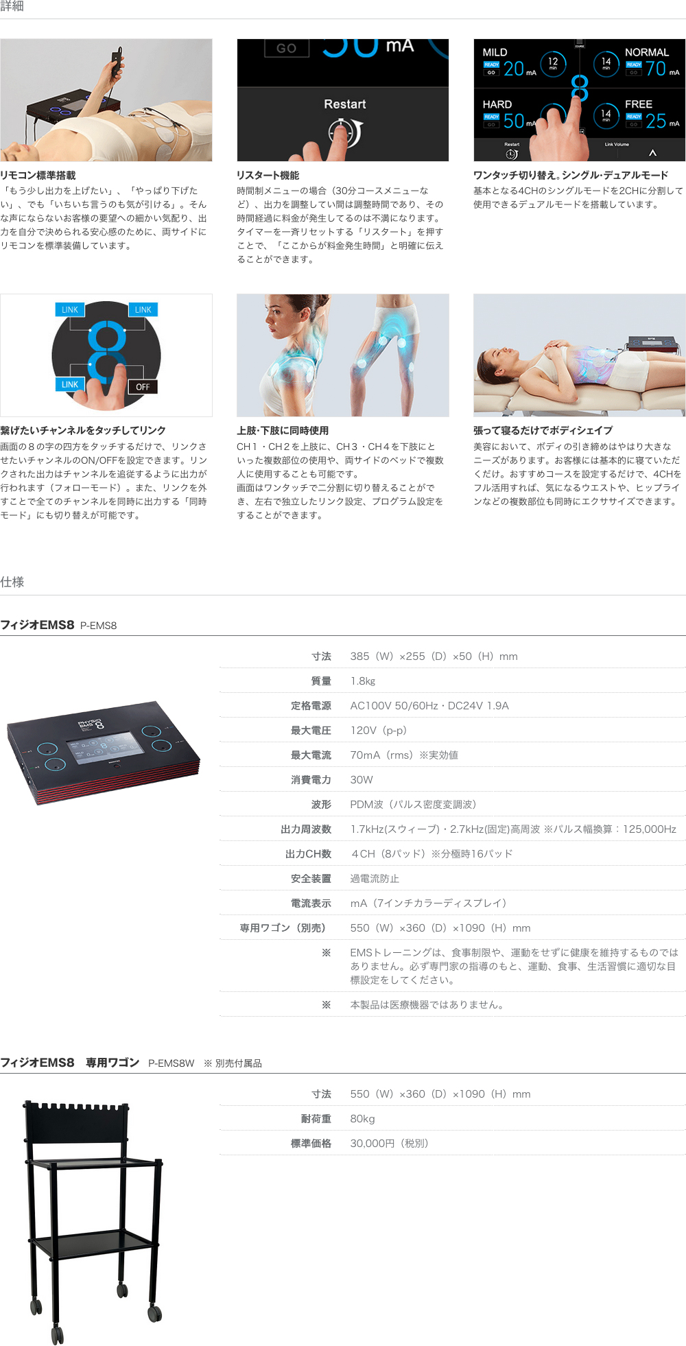 引用元:酒井医療株式会社「フィジオEMS8 」商品ページ