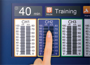 特殊波形エムキューブ波を搭載。電気特有のチクチクした痛みを伴わない刺激感が特徴のエムキューブ波は、優れた深部浸透性により、深層筋肉まで作用します。絶えず周波数が変化するため、電気刺激への筋肉の慣れを防ぎ、いつでも効果的なトリートメントを提供します。