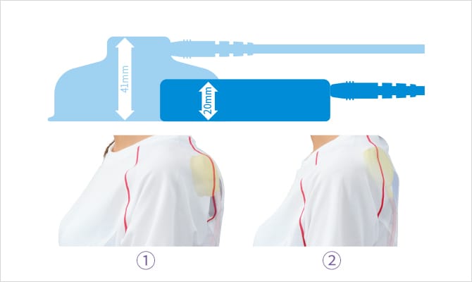 これにより背中や肩など、衣服内への装着がしやすくなりました。
