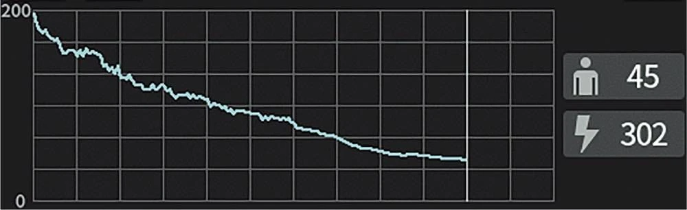 治療グラフ表示と治療音によって、患部の状態を確認しながら治療が行えます。皮膚インピーダンスがリアルタイムで表示されるので、治療ポイントへのアプローチの指標となります。