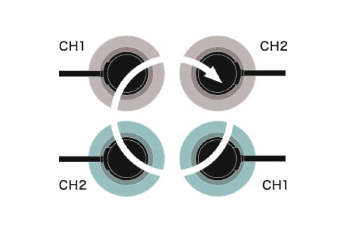 4つの導子の間で電流が流れるポイントを独自のリズムで順番に移動させながら、筋や神経を刺激するモードです。