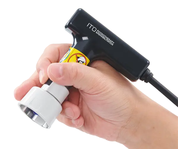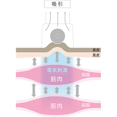 患部に素早く、的確にアプローチするハンディ型のプローブに「経皮的吸引」を搭載。従来の「押す」施術だけではなく、「吸い上げる」機能が加わることで、筋や筋膜への新たな電気刺激のアプローチが可能となります。