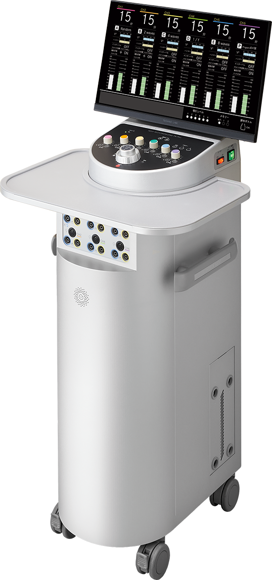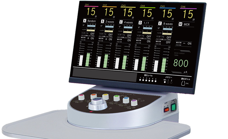ハンマーのパターンが異なる5種類の低周波と、こだわりの波形を使用したMCR(マイクロカレント)をご用意。治療時間やインターバルなどの組み合わせで、幅広い治療を行うことができます。
