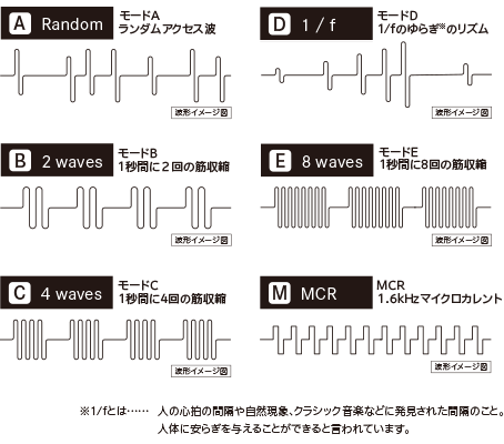 また、5種類の低周波+MCR(マイクロカレント)を自由に組み合わせて出力ができる、「プログラムモード」を新たに搭載しました。