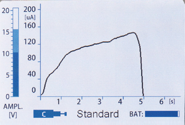 トリートメントパネル(治療画面)により、電流量及び治療効果を確認出来ます。