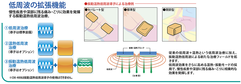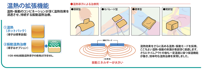 | DX-1600:低周波導子16/温熱導子16 DX-800:低周波導子8/温熱導子8 |