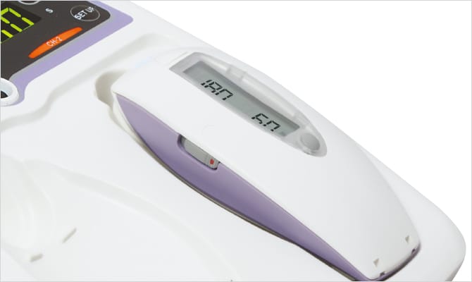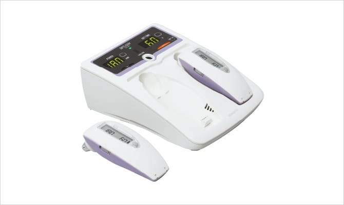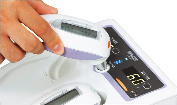 プローブをクレードルにセットすると、自動的に充電が始まります。ランプの点滅表示により、充電状態の確認は容易です。