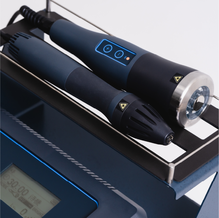 プローブSはよりピンポイントで使用するため近赤外線とLED赤に特化し、高い浸透性を実現。双方ともに目的に合わせ出力レベルを設定可能。