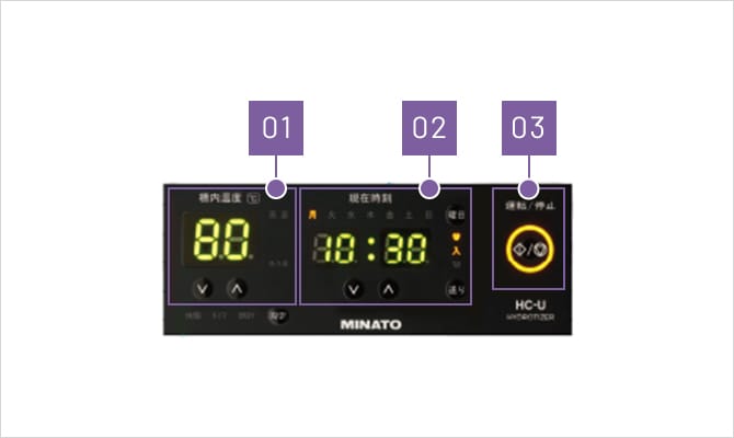 槽内温度が設定温度よりも5℃以上高くなると、高温ランプが点灯します。同時にブザーでもお知らせします。