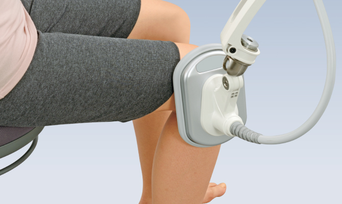 MT-5は患部に接触して照射できる、新型アプリケーターを採用。確実に患部を照射することができます。