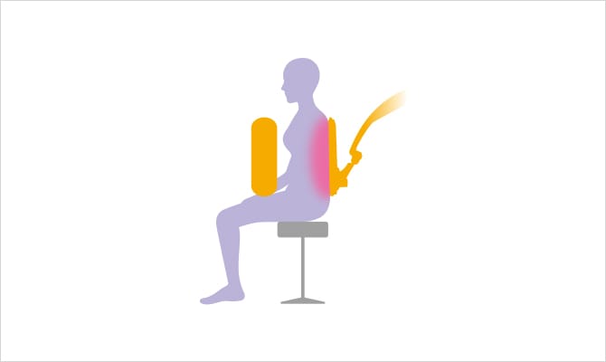 当社従来のマイクロ波治療器はアームの長さと角度を調節しながら患部にセットしていましたが、マイクロタイザーMT-5はミナト医科学が独自に設計したアーム機構を搭載。長さや角度を調節する必要がなく、ワンアクションでアプリケーターをセットできます。肩、腰、膝、足首などあらゆる治療部位に柔軟にフィットします。