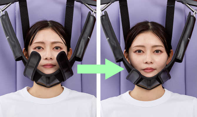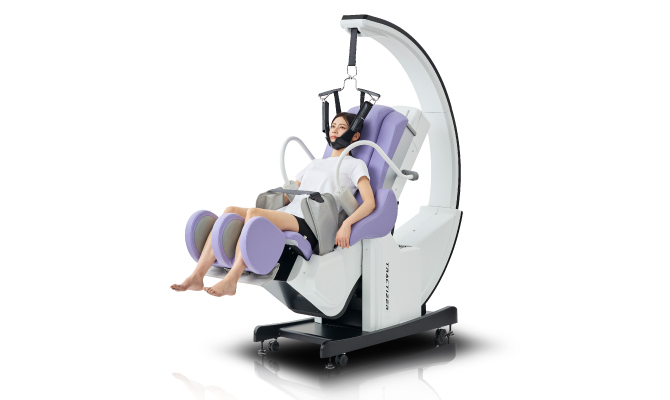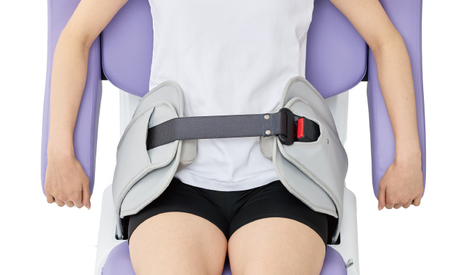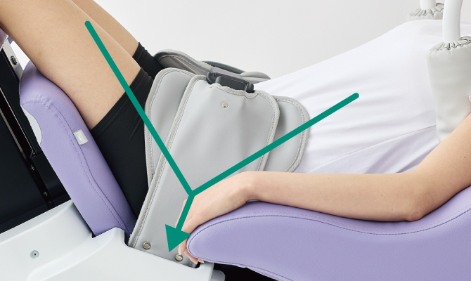 オットマンが自動でスライドし、身長に合わせた牽引ポジションに設定されます。さらに、エアバッグが脚を包み込み、脚部を安定させます。