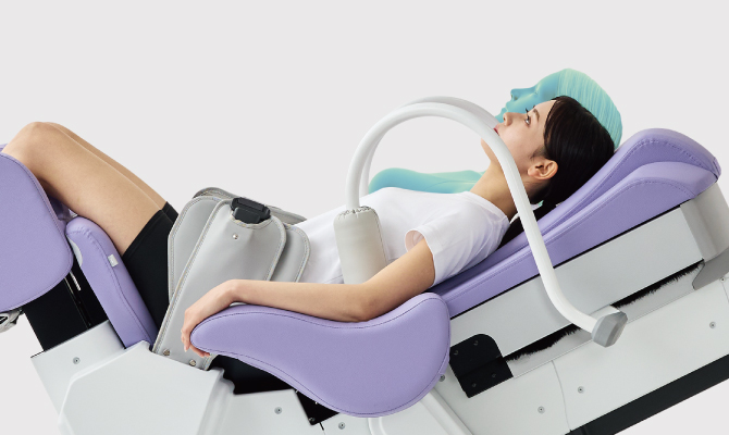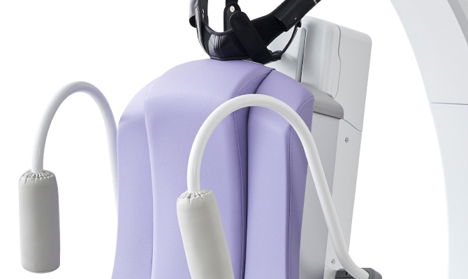 背マットを流線形に盛り上げました。患者様の身長に関わらず、頭部を預けやすい形状を追求しました。