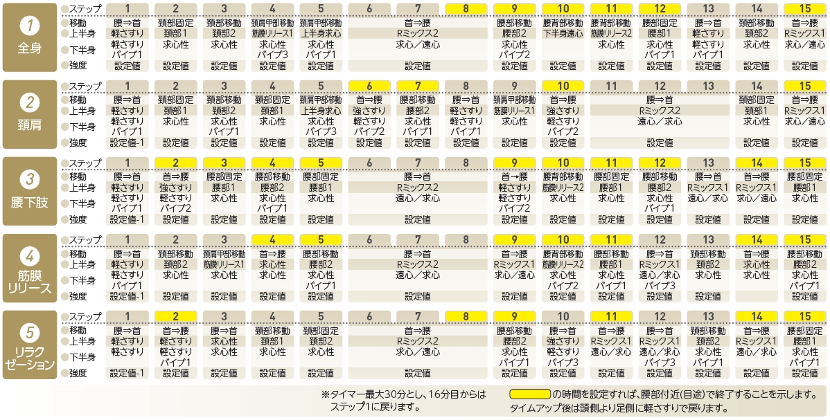 モミローラー、振動ローラーの機能を組合せプログラムを構成しています。