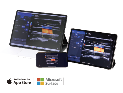 SONONはWindows、iOS、iPadOSのアプリケーションで動作。2018年の発売当初には搭載していなかった機能をアップデートにより追加。2画面機能、日本語表記、パルスドプラモード、Mモードなど、使用者目線での機能を追加。機能追加の他、画質の向上や操作性の向上などのアップデートを行い、使いやすさを追求して進化を続けます。