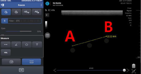 Ex) 距離:筋肉の厚みや腫脹の評価、頸動脈エコー時のIMT計測など。